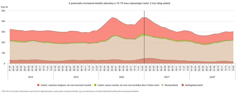 A potenciális munkaerő-tartalék a 15-74 éves népességen belül, 3 havi átlag adatok